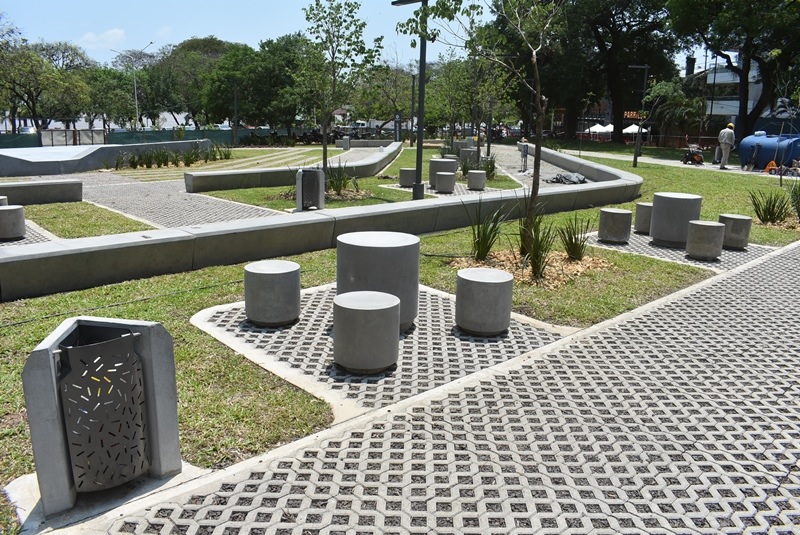 La intervención comprende 4.340m2, y está enmarcado entre las veredas existentes de borde sobre calle Junín, Pago Lago, la avenida Costanera y la vereda diagonal que se presenta de este a oeste.