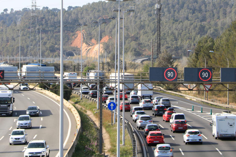 Un total de 255.000 vehículos, el 44,4% de los 575.000 previstos hasta mañana al mediodía, han abandonado hasta las 17.00 horas de este jueves del área de Barcelona en la operación salida de Semana Santa, en la que las mayores retenciones se concentran en la AP-7, con tramos de cola de hasta 19 kilómetros.