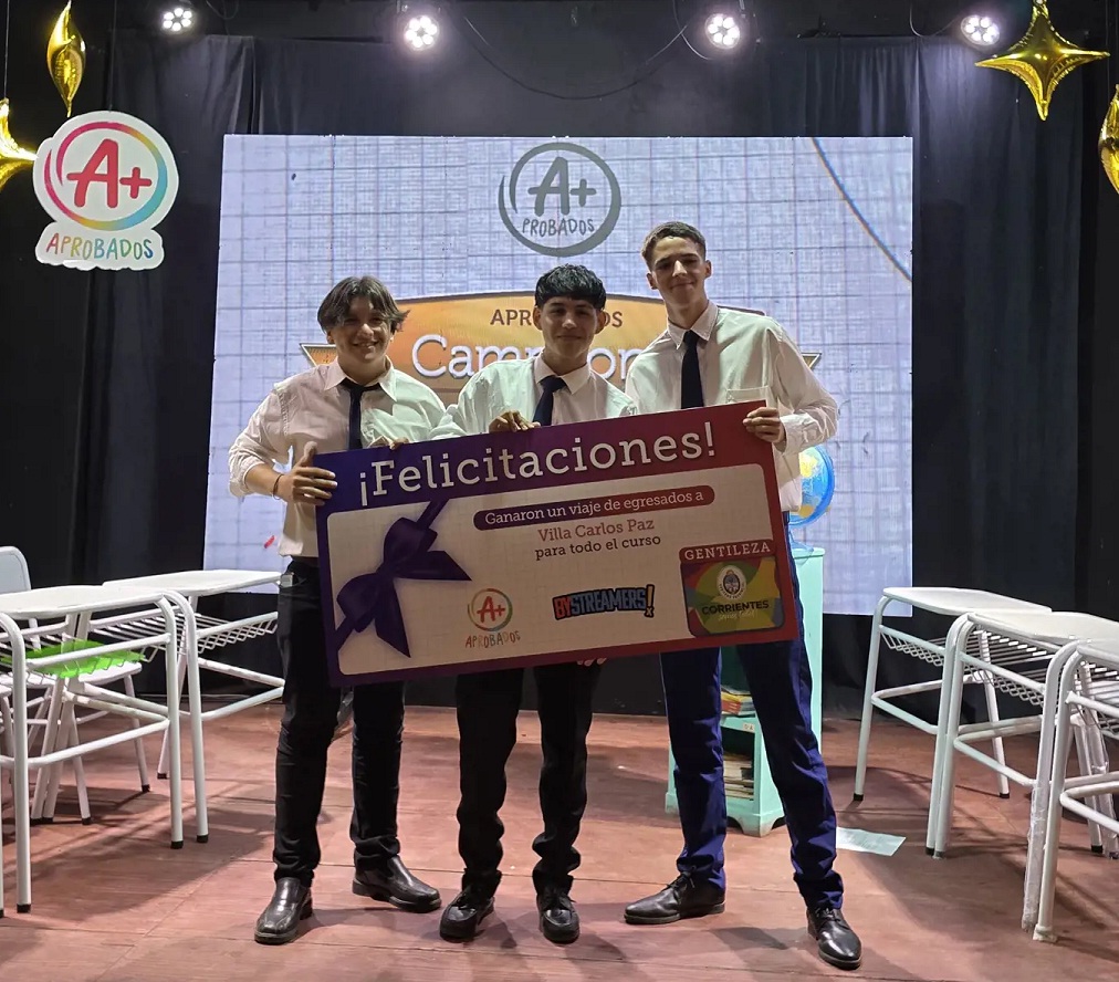 Alumnos de la Escuela “Miguel Ángel Giménez” de Paso de la Patria, se consagraron este miércoles Campeones de la primera edición de “Aprobados”, programa de preguntas y respuestas que premia el conocimiento de los estudiantes del último año del nivel secundario. La iniciativa cuenta con el apoyo del Ministerio de Educación de la Provincia, a través de la Subsecretaría de Contenidos Audiovisuales junto a las plataformas Corrientes Play y EducaPlay; y fue producido y emitido por el canal “ByStreamers”.